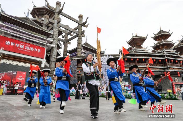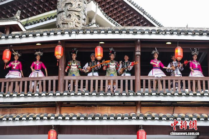 10月1日,位于贵州省贵阳市的多彩贵州乡举办平易近族年夜巡回举动,上演者衣着艳服巡礼并正在途中停止芦笙舞、侗族年夜歌、锦鸡舞上演,吸收没有少市平易近战乘客旁观、到场。图为侗族年夜歌上演。中新社记者 瞿宏伦 摄
